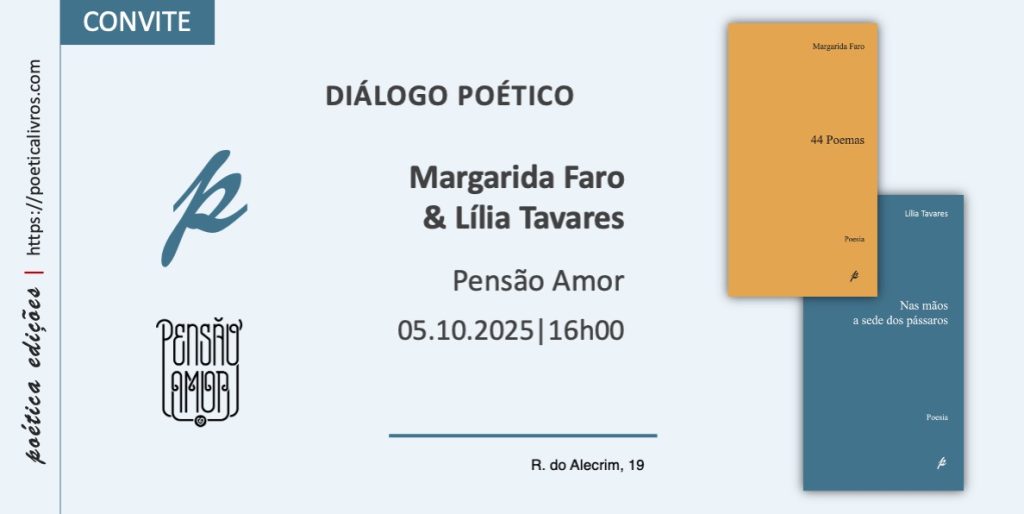 Duas poetas conversam sobre a sua poesia, num diálogo intimista que nos levará para lá da palavra. O que representa para cada uma a escrita, de onde vem e como se processa esta “vocação”, tópicos possíveis de uma conversa que terá como ponto de partida as suas mais recentes obras, 44 poemas (Margarida Faro) e Nas mãos a sede dos pássaros (Lília Tavares).